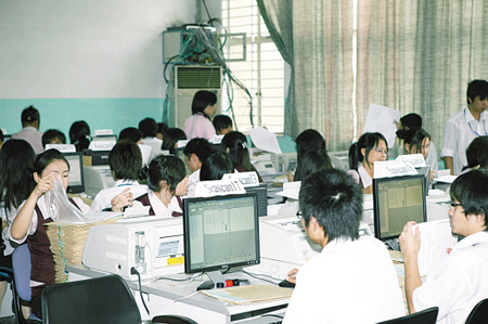 高考試卷(答題紙)經(jīng)過掃描處理后,全部實現(xiàn)“背靠背”兩次評閱,從而杜絕不同評卷教師之間評分時的相互影響;而兩名教師的給分值差若超出規(guī)定范圍,系統(tǒng)則自動將該答卷提交第三人,甚至是第四人評閱,直至分值差符合設定的范圍。