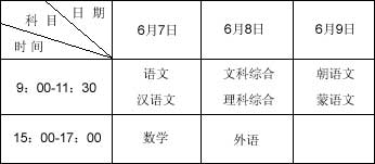 08年普高招生全國統(tǒng)一考試科目時間安排
