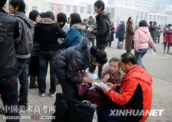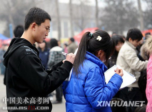 當(dāng)日,安徽省2009年高考藝術(shù)類專業(yè)省外院校招生考試報(bào)名工作正式啟動(dòng),近萬名考生來到報(bào)名點(diǎn)報(bào)名。新華社發(fā)