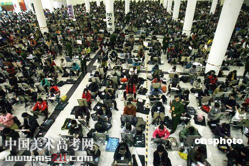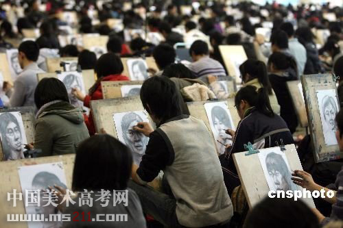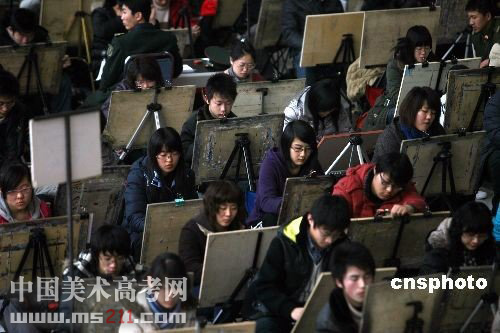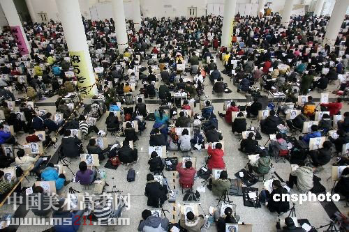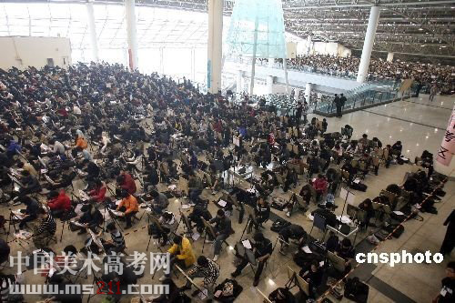 當日,山東省藝術類院校招生考試正式開始。由于考生人數眾多,山東工藝美術學院將考場搬進2萬余平方米的濟南市舜耕會展中心,8000多名美術類專業(yè)考生在這里參加考試。2009年山東共有9.05萬考生參加藝考。