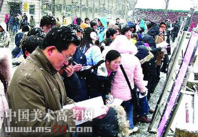 考生們冒雪報(bào)名參加2006年高考山東省外高校藝術(shù)專業(yè)測(cè)試。
