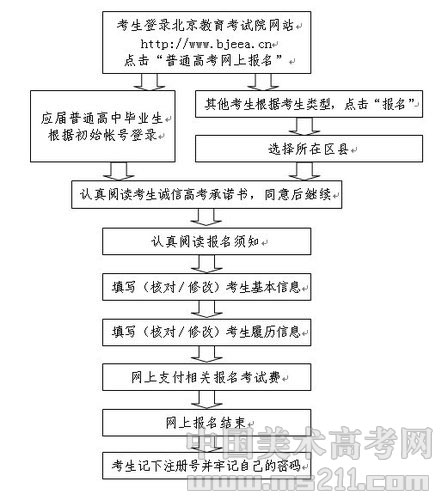 考生報名實行網(wǎng)上報名方式,即考生在規(guī)定時間內登錄北京教育考試院網(wǎng)站(www.bjeea.cn)填寫報名信息,同時網(wǎng)上支付報名考試費,并按規(guī)定程序到指定地點確認報名資格。不具備網(wǎng)上報名條件的考生可采取在報名資格確認地點現(xiàn)場報名的方式進行報名。