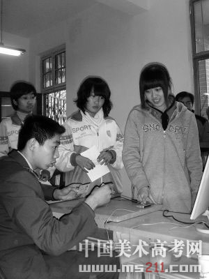 考生首先把身份證放到身份證識別儀上之后,工作人員旁邊的電腦屏幕上立即顯示出該考生的基本信息。然后,按照工作人員指示,考生將右手食指放在指紋儀中心部位,待電腦上顯示出清晰的指紋圖像后,考生就可現(xiàn)場拍數(shù)碼照片。照片拍好后,工作人員認真比對身份證照片和現(xiàn)場拍攝的照片,發(fā)現(xiàn)沒有異常后,開始打印信息確認單?忌玫叫畔⒋_認單,確認信息無誤后,就可以簽上自己的名字,將確認單交到班主任手中,F(xiàn)場確認就結(jié)束了。整個過程十分簡單。