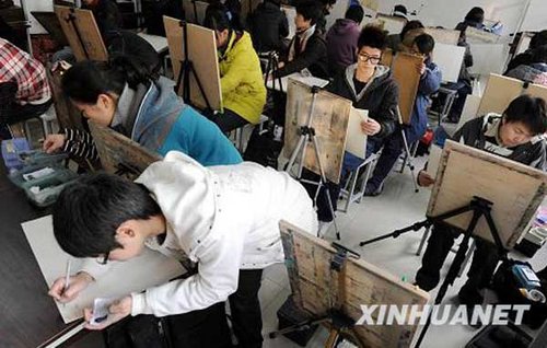 當(dāng)日,2010年浙江省普通高校美術(shù)類專業(yè)統(tǒng)考開(kāi)考。此次考試首次由全省11個(gè)設(shè)區(qū)的市及義烏市招生考試機(jī)構(gòu)組織實(shí)施,并在市政府所在地設(shè)立考點(diǎn)。杭州市報(bào)考人數(shù)達(dá)到3002人新華社發(fā)(程瑞鑫攝)