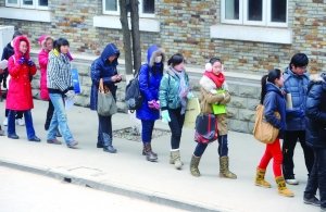 “我凌晨四點多就來了,那時漆黑一片呢!蓖瑯邮怯耙晫W(xué)院門外,南京的一位家長正在幫女兒排隊,“好冷哦,我來的時候已經(jīng)有好幾個家長在了,聽說最早的三點多就來了。”為了御寒,這位母親特地穿上了厚厚的裘皮大衣,緊緊地裹著圍巾,“就是這樣還凍得發(fā)抖,只好一邊等,一邊跺腳,都是為了孩子啊。”