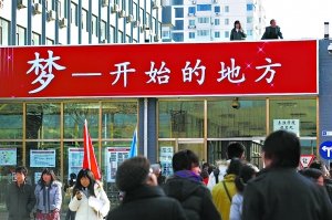 春節(jié)剛過,北京已經(jīng)有了融融春意。剛剛過去的這個周日,恰逢北京電影學(xué)院招生報名的第一天,陽光暖暖地照著走進電影學(xué)院大門、懷抱青春夢想的學(xué)子們,電影學(xué)院門口又掛起了那幅藝術(shù)考生們都熟悉的大紅標(biāo)語:北京電影學(xué)院——夢開始的地方。新一季的“追夢之旅”就此啟程了。經(jīng)過多年的藝考熱,學(xué)生和家長們都更加成熟和理智。與往年比,今年追夢的孩子們似乎有著更清晰的目標(biāo)和更堅定的信心。