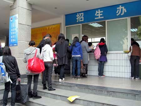 記者看到,報(bào)名點(diǎn)前許多考生都在忙著填寫報(bào)考資料,前來報(bào)考的學(xué)生許多是父母雙雙陪同,他們都是從外地來成都考試的學(xué)生。記者了解到,由于許多藝術(shù)考生都實(shí)行全面撒網(wǎng)和重點(diǎn)捕撈策略,他們從1月份開始就忙著奔赴全國各地參加考試。