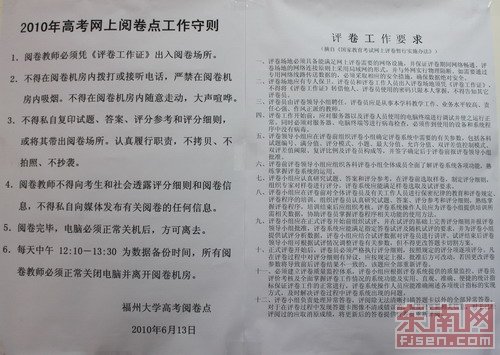 張貼于閱卷現(xiàn)場的工作守則