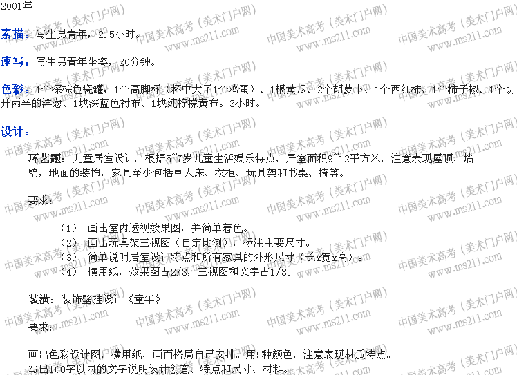 2001年北京林業(yè)大學(xué)美術(shù)高考專業(yè)考題
