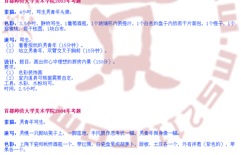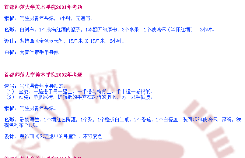 2001-2004年首都師范大學(xué)美術(shù)高考專業(yè)考題