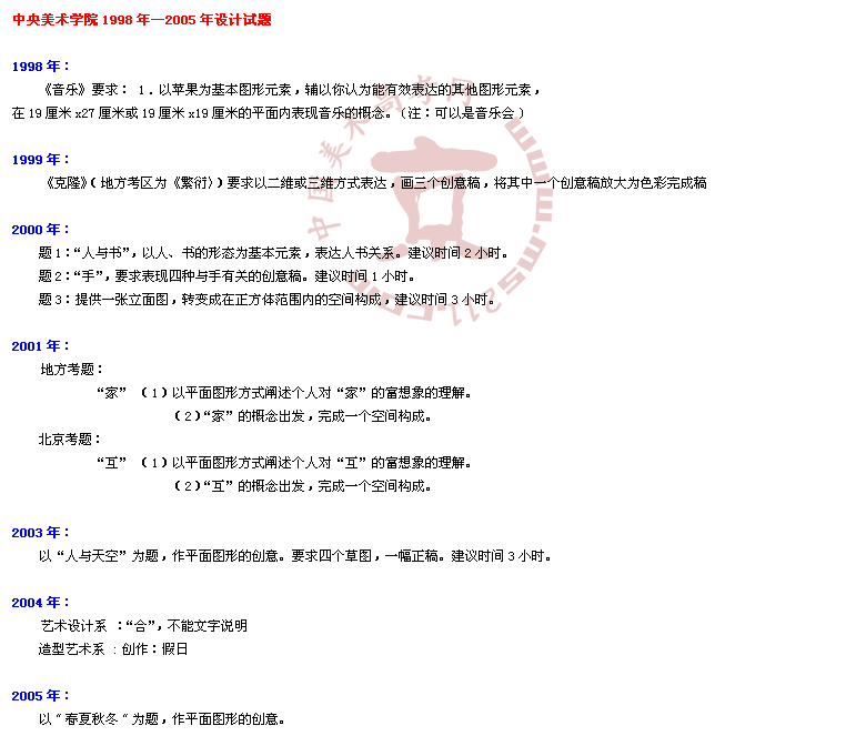 1998年—2005年中央美術(shù)學(xué)院美術(shù)高考專業(yè)考題(設(shè)計(jì)專業(yè))