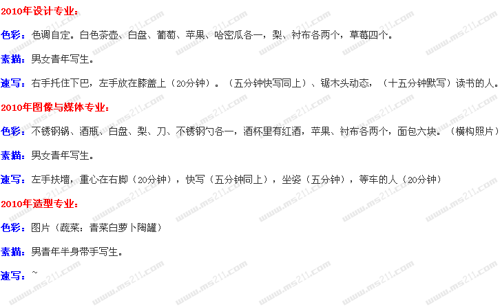 2010年中國(guó)美術(shù)學(xué)院美術(shù)高考專(zhuān)業(yè)考題
