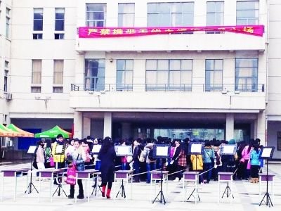 武漢音樂(lè)學(xué)院考場(chǎng)外,藝考生冒著寒風(fēng)候考。