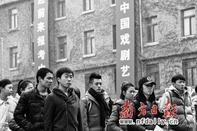 又是一年藝考來(lái)臨時(shí),近段時(shí)間,各地藝術(shù)考試大戰(zhàn)硝煙再起。昨天下午2時(shí),中央戲劇學(xué)院表演系初試榜單公布。據(jù)了解,2013年報(bào)考中戲的考生共有23000余人,其中表演系共9700余人報(bào)名,而今年表演系只招收50人。南方日?qǐng)?bào)記者隨機(jī)調(diào)查了一些學(xué)生發(fā)現(xiàn),其實(shí)他們并不像老師們想象得那樣,什么都不懂就來(lái)做明星夢(mèng)。絕大多數(shù)人都表示,他們是“真對(duì)表演這種藝術(shù)感興趣”。但其中有些人,還真是“非中戲北電不考”。與這股“藝考熱”相對(duì)的是,專家們也在提醒,每年大量的藝術(shù)畢業(yè)生就業(yè)并不理想,不少藝術(shù)院校畢業(yè)生不得不轉(zhuǎn)行,在幾年后離場(chǎng)。