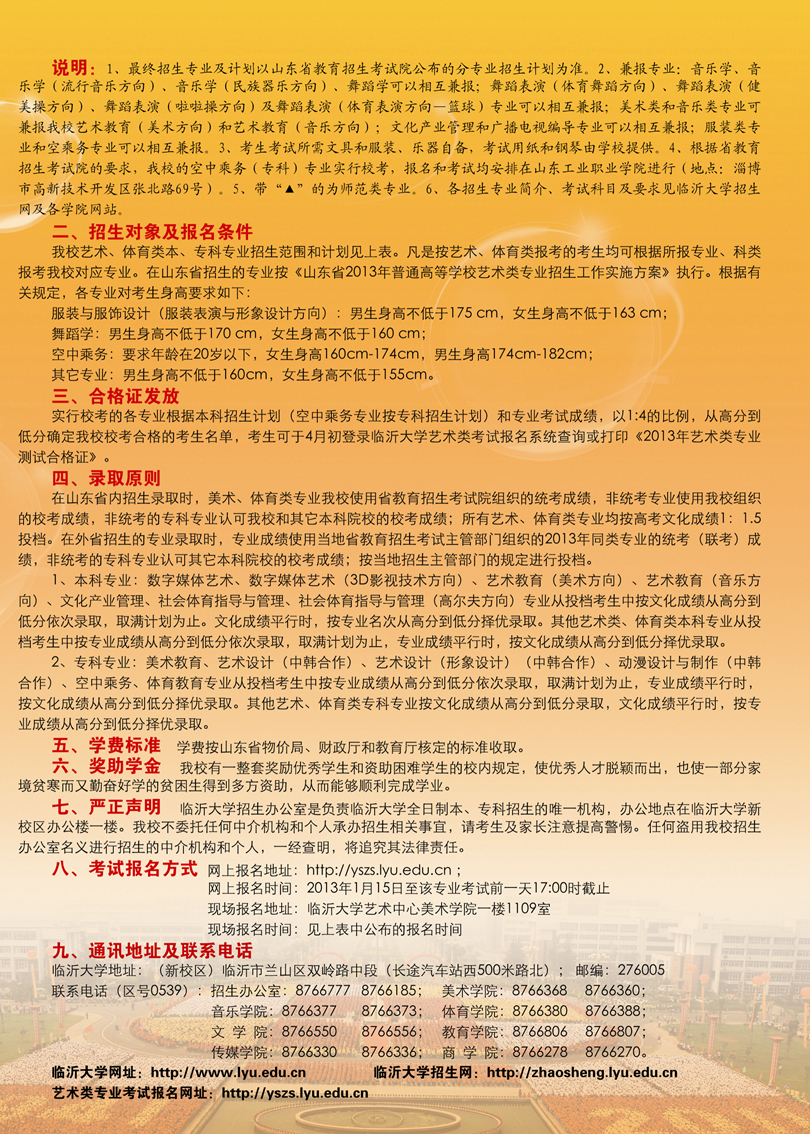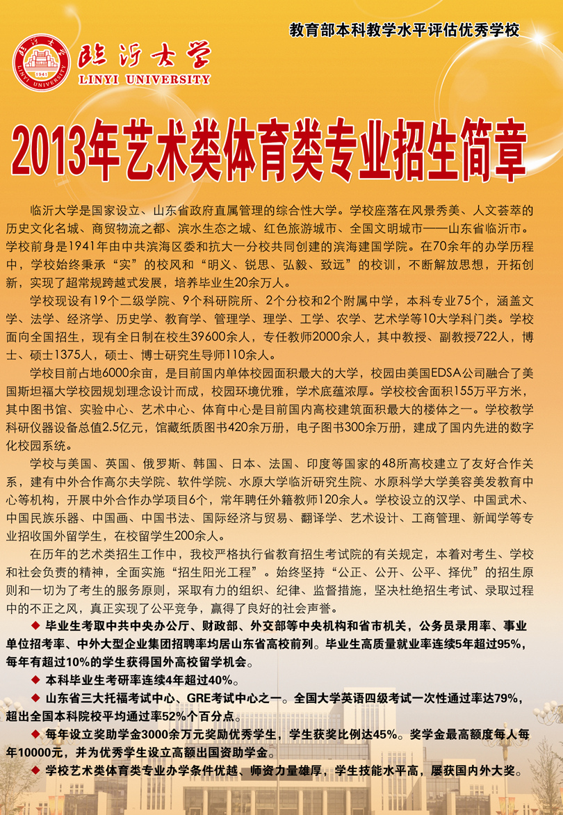 臨沂大學(xué)2013年藝體類招生簡(jiǎn)章
