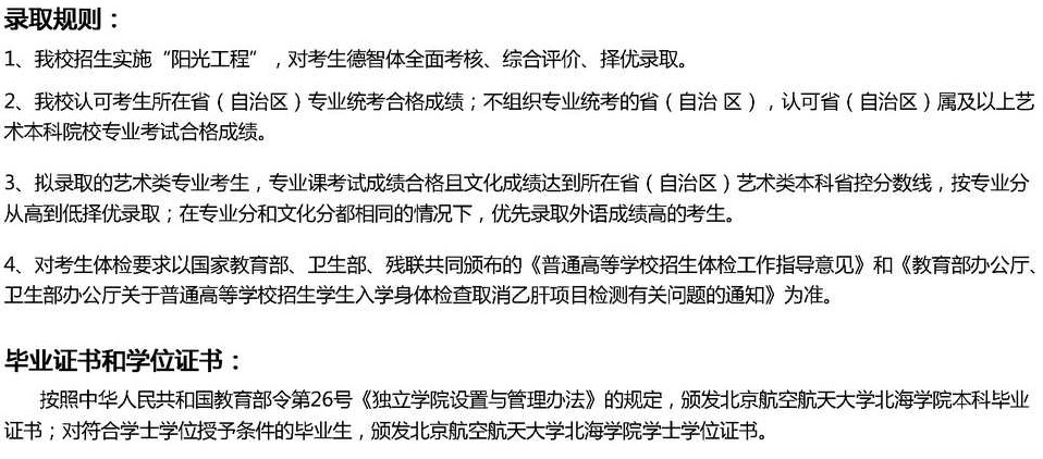 2013年北京航空航天大學北海學院錄取原則