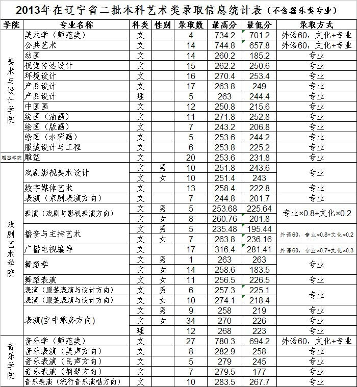 2013年沈陽師范大學美術(shù)高考錄取分數(shù)線(遼寧省)