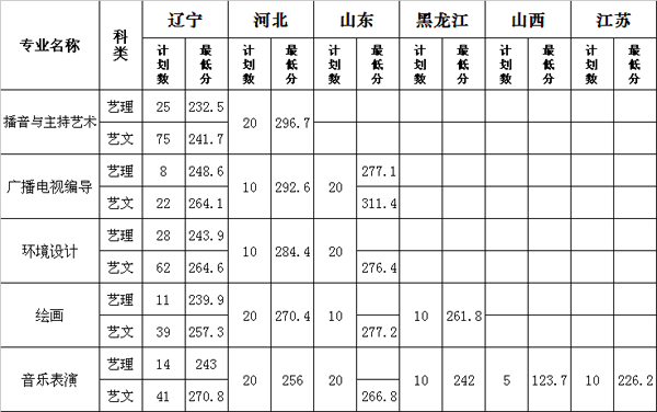 渤海大學(xué)2013年藝術(shù)類專業(yè)錄取分?jǐn)?shù)線