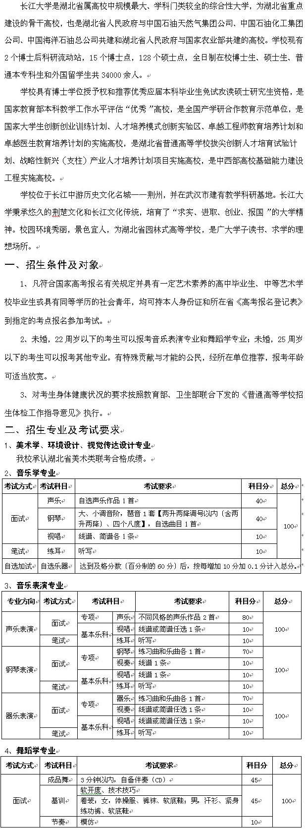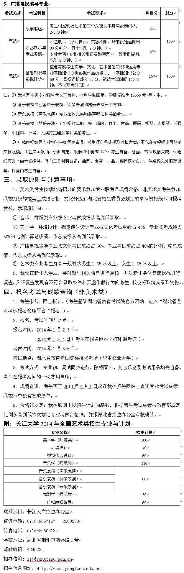 長江大學(xué)2014年藝術(shù)類專業(yè)招生簡章