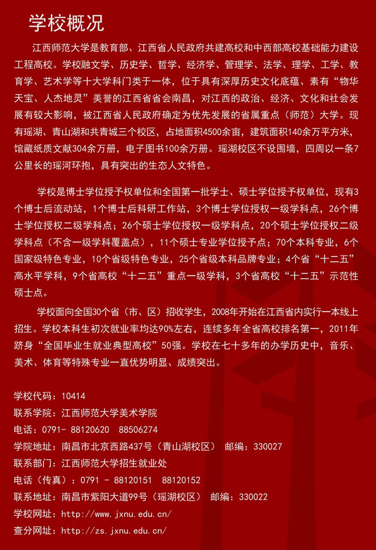 江西師范大學2014年美術(shù)類招生簡章(外省)