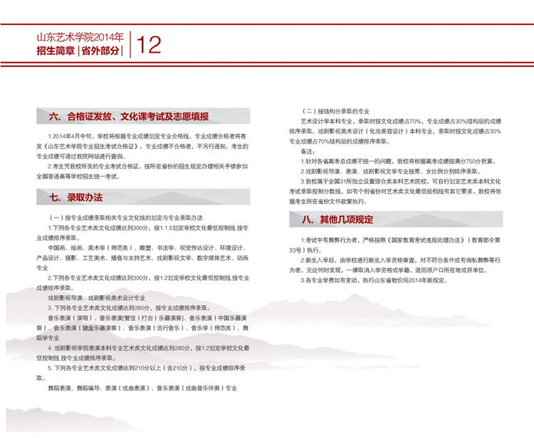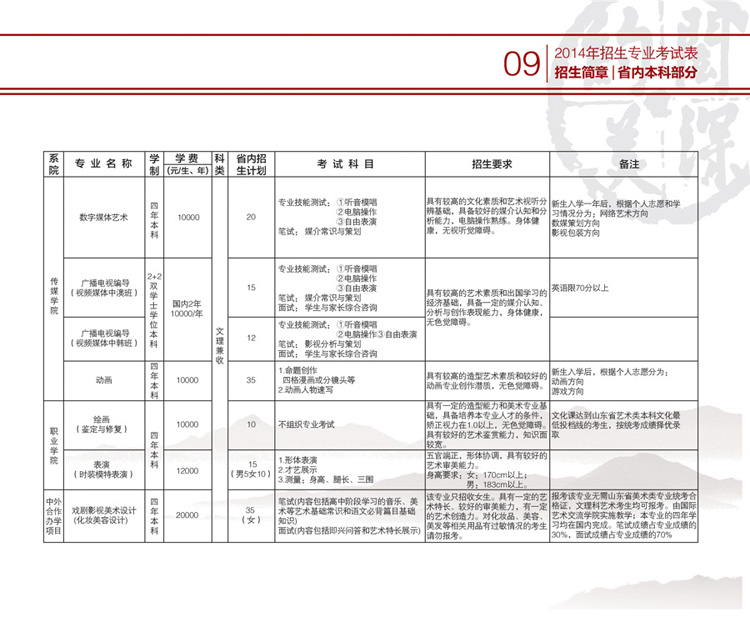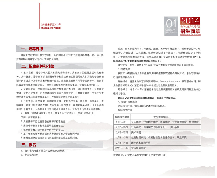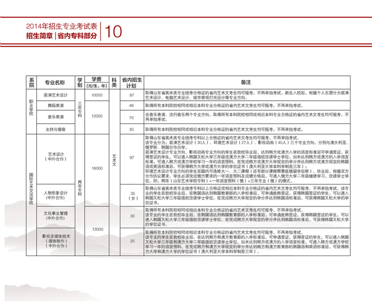山東藝術(shù)學(xué)院2014年藝術(shù)類招生簡(jiǎn)章