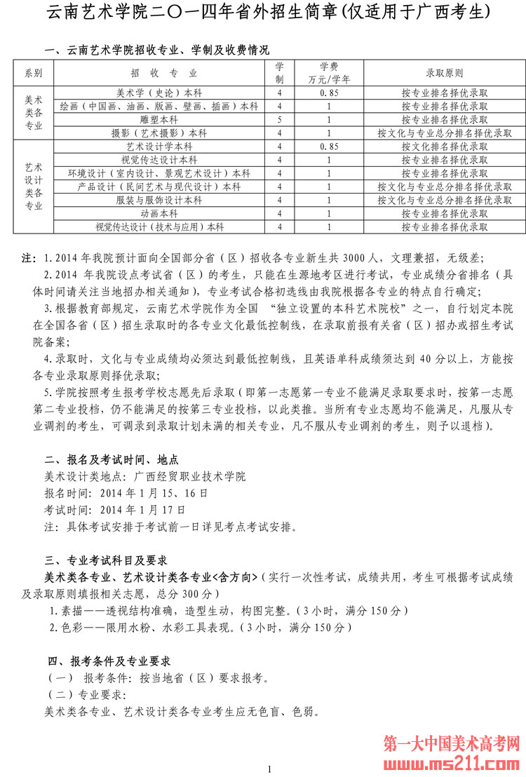云南藝術(shù)學(xué)院2014年藝術(shù)類錄取原則(廣西)