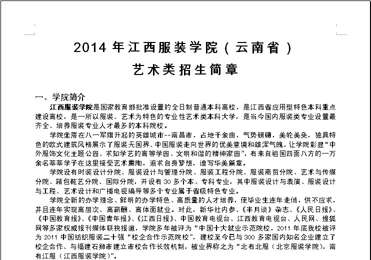 江西服裝學(xué)院2014年藝術(shù)類錄取原則(云南)