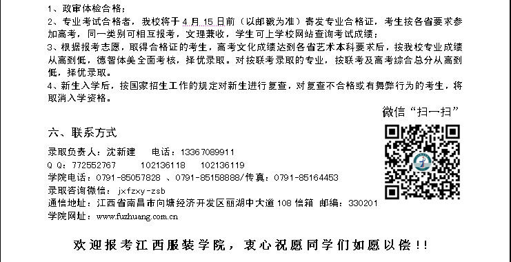 江西服裝學(xué)院2014年藝術(shù)類錄取原則(山東)