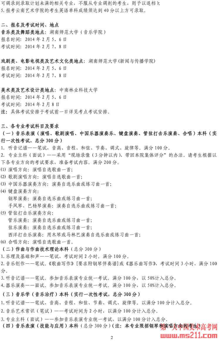 云南藝術(shù)學(xué)院2014年藝術(shù)類錄取原則(湖南)