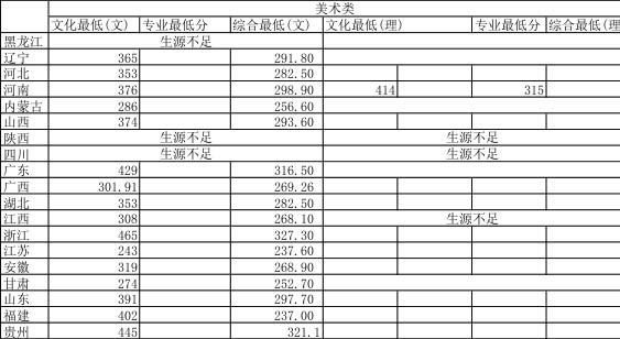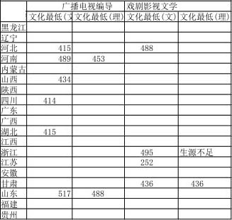 對(duì)取得了各。ㄗ灾螀^(qū))藝術(shù)類專業(yè)統(tǒng)考合格證和我校藝術(shù)類專業(yè)?己细褡C且文化課成績(jī)達(dá)到各省最低錄取控制分?jǐn)?shù)線的省外考生,我校按以下原則錄。簭V播電視編導(dǎo)和戲劇影視文學(xué)專業(yè)按照考生所在省份高考文化成績(jī)從高分到低分錄取,如文化成績(jī)相同,專業(yè)成績(jī)高者優(yōu)先;美術(shù)類、音樂(lè)類、舞蹈學(xué)、播音與主持藝術(shù)專業(yè)按綜合成績(jī)從高到低擇優(yōu)錄。ňC合成績(jī)=?紝I(yè)分*60%+高考文化分*40%),綜合成績(jī)相同時(shí),專業(yè)成績(jī)高者優(yōu)先。