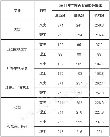 2014年西安外國(guó)語大學(xué)藝術(shù)類專業(yè)錄取分?jǐn)?shù)線