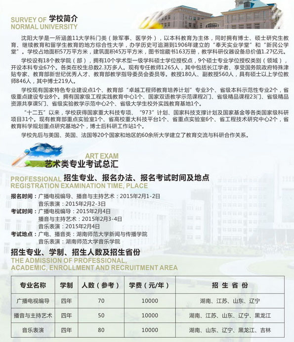 2015年沈陽(yáng)大學(xué)藝術(shù)類招生簡(jiǎn)章(湖南。