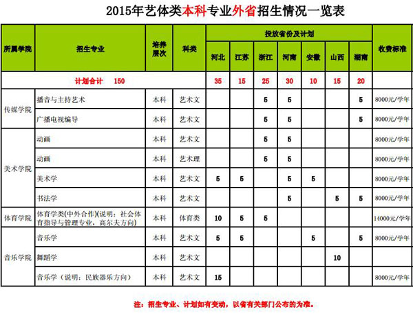 2015年藝體類?普猩鷮I(yè)、計(jì)劃一覽表