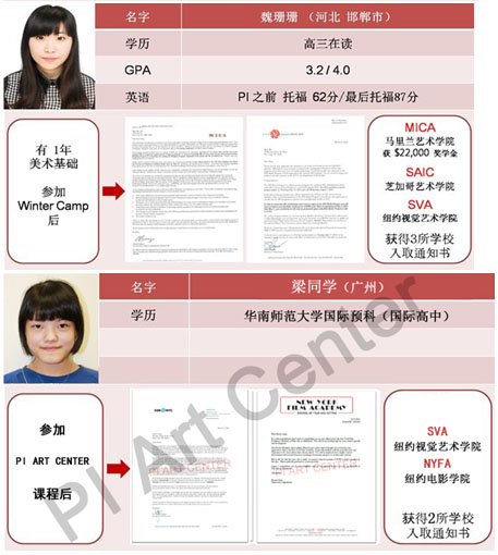 3. 夏令營(yíng)小學(xué)期結(jié)束后2015年 10月PI為學(xué)生報(bào)名申請(qǐng)美國(guó)名牌藝術(shù)大學(xué)(有托福成績(jī)者);