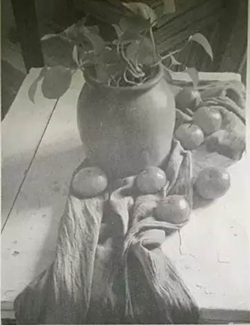 桌面上有襯布一塊,橘子7個,載種綠葉的花壇1個。時間2.5小時,要求寫實,構(gòu)圖完整,造型準(zhǔn)確,色彩關(guān)系明確。