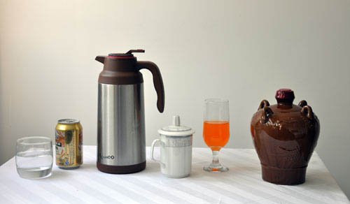三、模擬寫生內(nèi)容:一個(gè)不銹鋼水壺,一個(gè)深色陶罐,一個(gè)盛有果汁的酒杯,一個(gè)帶蓋白瓷茶杯,一個(gè)金屬易拉罐,一個(gè)盛有清水的透明玻璃杯。(見圖片小樣)默寫內(nèi)容:兩根香蕉、一塊白色襯布、一塊深灰色襯布。