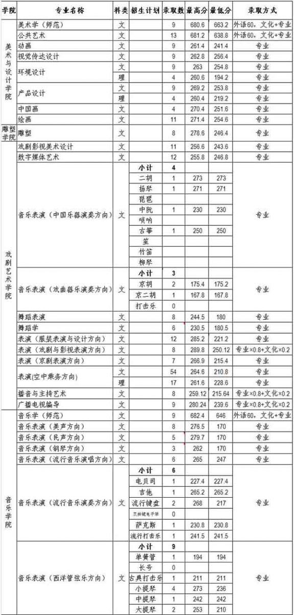 (7)表演、音樂(lè)表演專業(yè):文化考試成績(jī)?cè)诤邶埥澏ǖ乃囆g(shù)本科文化成績(jī)錄取控制線以上;按專業(yè)成績(jī)由高到低依次錄取。