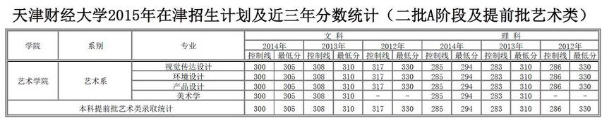 2015年天津財(cái)經(jīng)大學(xué)美術(shù)類專業(yè)錄取分?jǐn)?shù)線