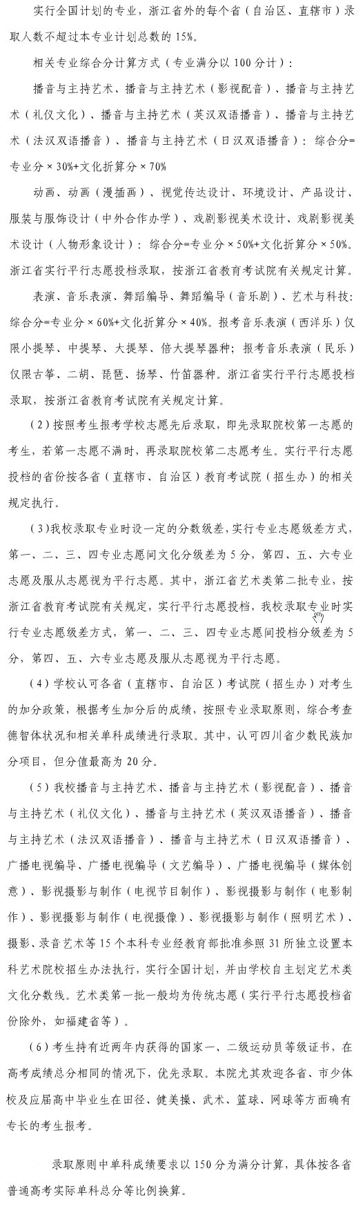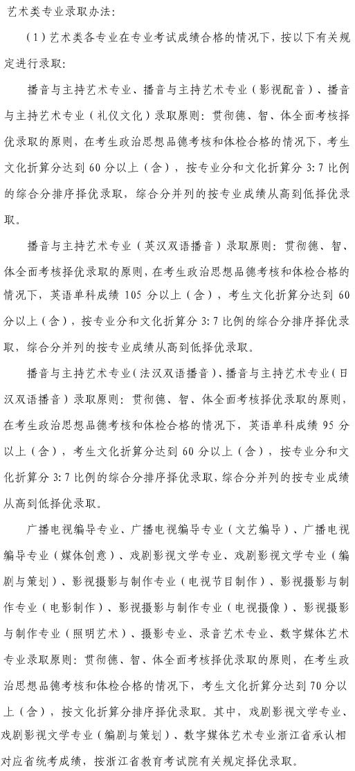 5、各專業(yè)錄取辦法詳見《浙江傳媒學(xué)院2015年招生錄取章程》