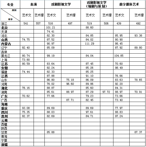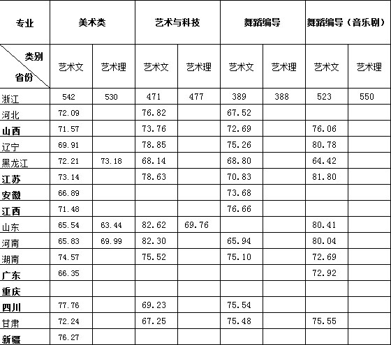 一、2015年浙江傳媒學(xué)院藝術(shù)類本科分省美術(shù)類、音樂類專業(yè)分?jǐn)?shù)線