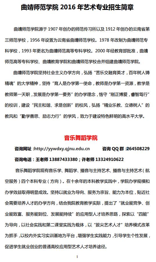 2016年曲靖師范學(xué)院藝術(shù)專業(yè)招生簡章