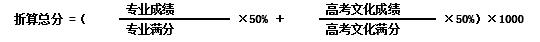 取得多個藝術專業(yè)合格證的考生可以兼報相應專業(yè),按折算總分(不分文理)從高到低擇優(yōu)錄取(不分專業(yè)先后)。(公式如下)