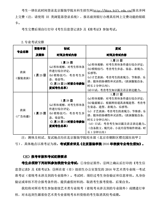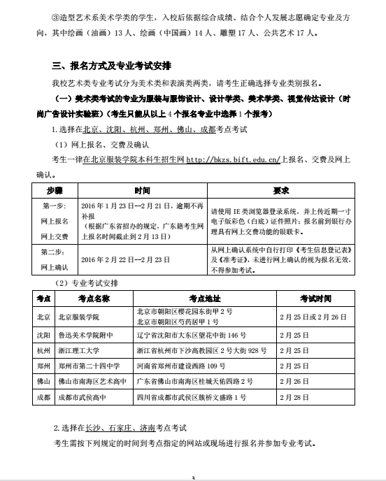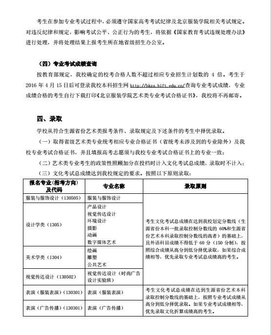 請考生按照我校公布的《北京服裝學(xué)院2016年藝術(shù)類本科專業(yè)招生簡章》上的內(nèi)容進(jìn)行報(bào)名、交費(fèi)、確認(rèn)和考試。