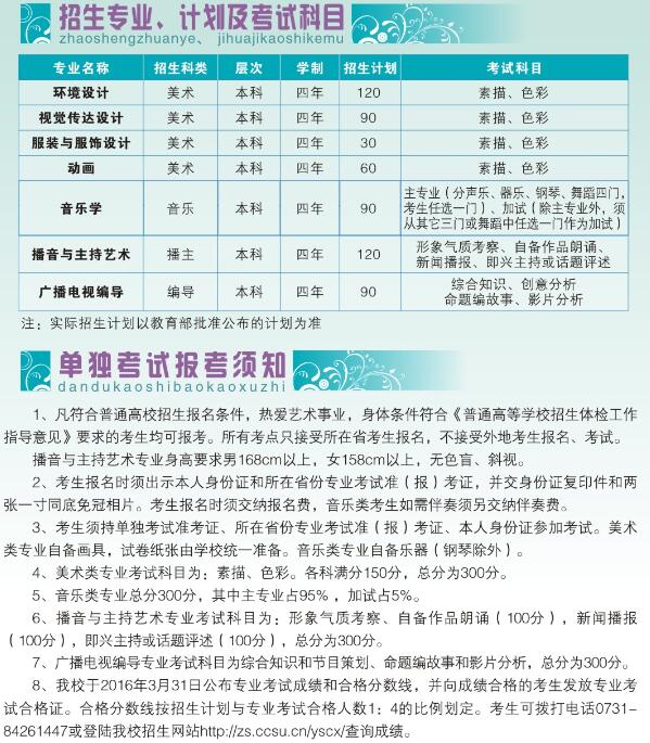 2016年長沙學(xué)院省外藝術(shù)類招生簡章