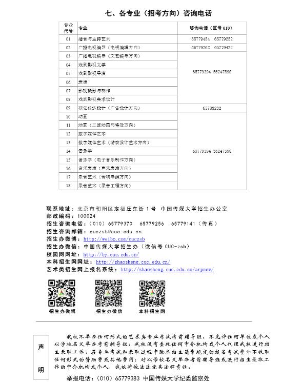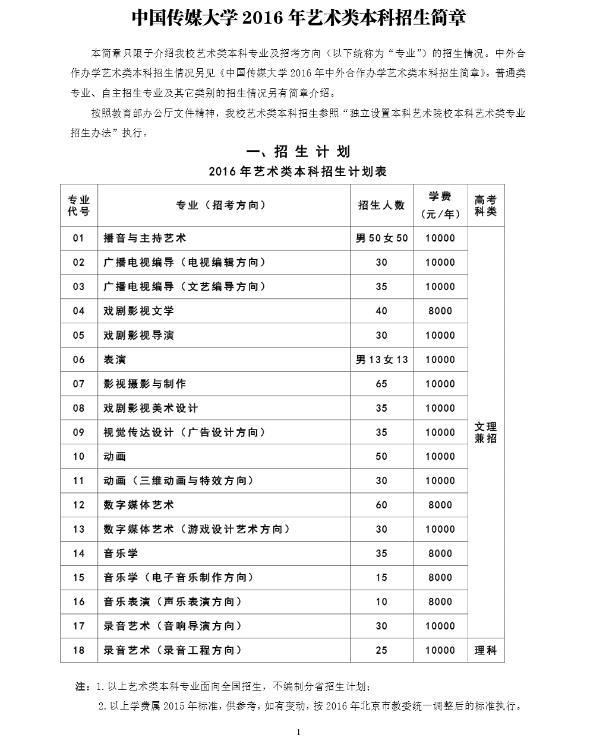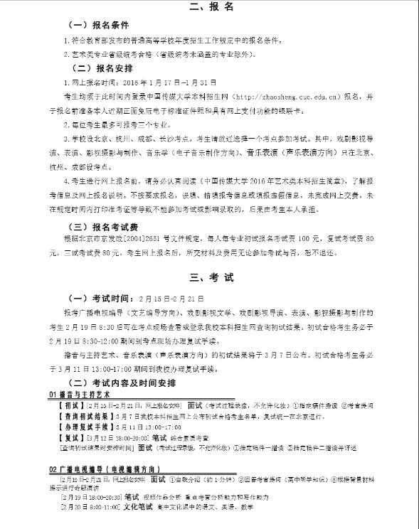 2016年中國傳媒大學(xué)藝術(shù)類本科招生簡章