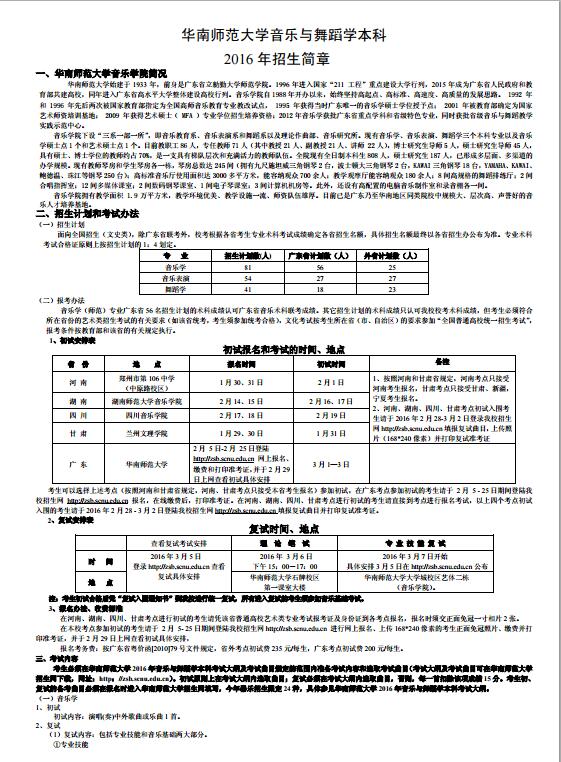 華南師范大學(xué)2016年音樂與舞蹈學(xué)招生簡章;PDF格式查看:華南師范大學(xué)音樂與舞蹈學(xué)本科2016年招生簡章