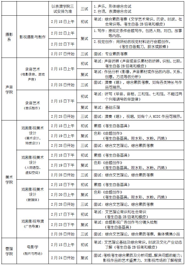 1. 北京考點(diǎn):考試地點(diǎn)在北京電影學(xué)院·校內(nèi)。考試專業(yè):涉及簡(jiǎn)章中列舉的各個(gè)專業(yè)