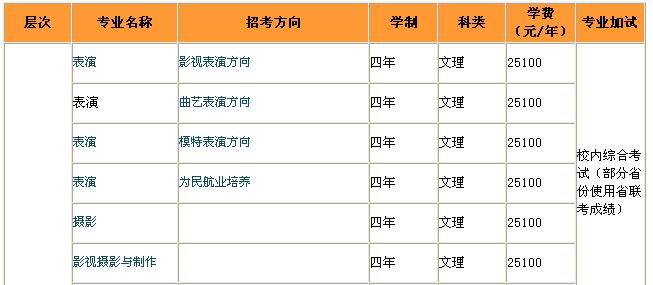 •報名考試費:表演(為民航業(yè)培養(yǎng))、書法學專業(yè)初、復試一次性繳納報名費180元;其他專業(yè)初試報名費100元,復試費80元。