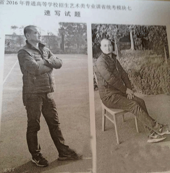 速寫(xiě)考試題目:照片寫(xiě)生,人物速寫(xiě),兩張照片,一張為男中年站姿、一張為男中年坐姿。