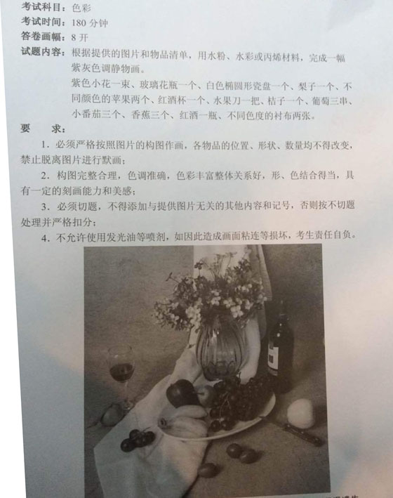 10、原白色襯布一塊:2016年仍然是白色襯布,不管是以白拖黑,還是以灰襯白,考生們對(duì)于襯布的理解,在這個(gè)考題中,可以盡情的展示了。